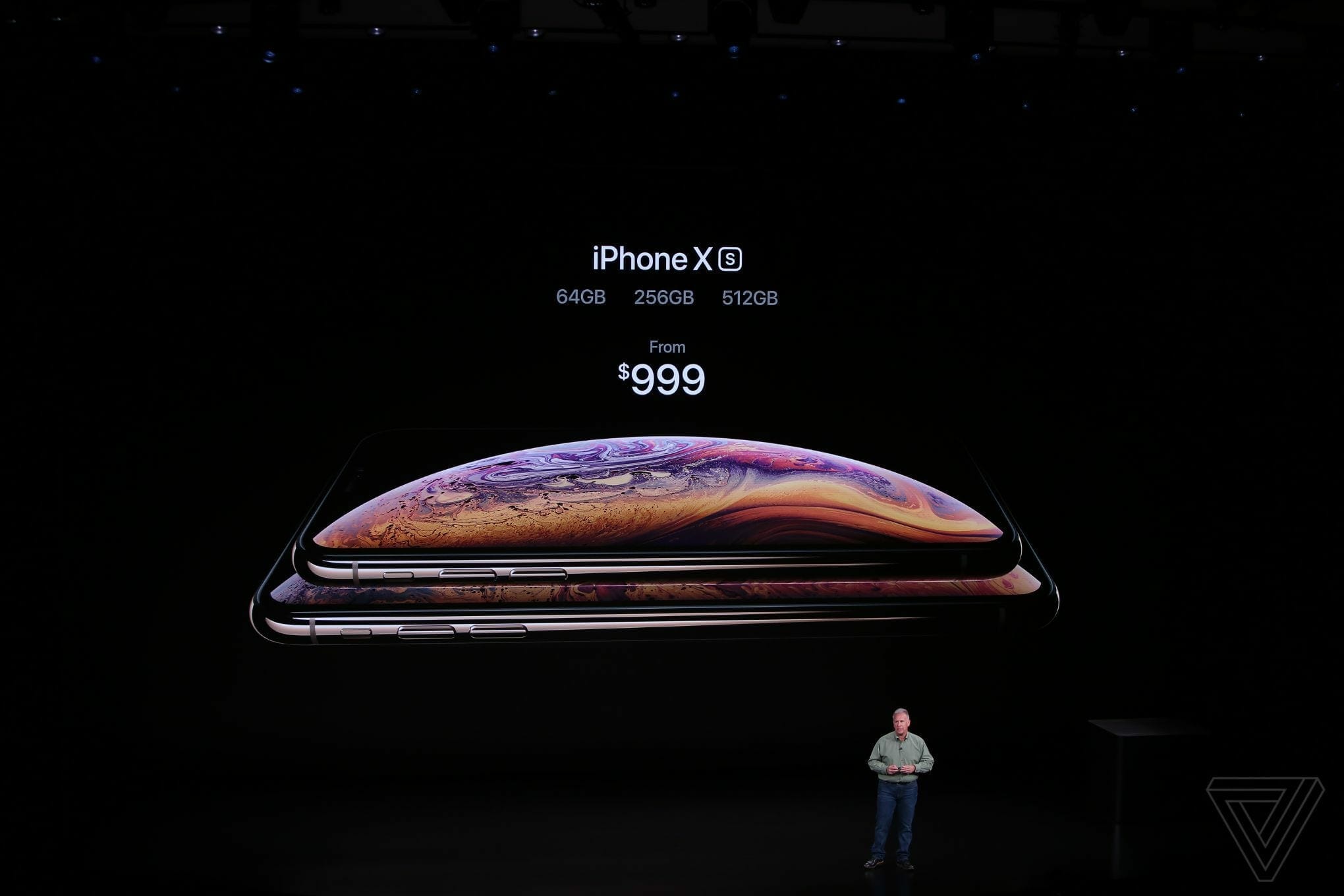 The iPhone XS will come in 64 GB, 256 GB, 512 GB capacities. Price starts from 999 USD for the 64 GB version.