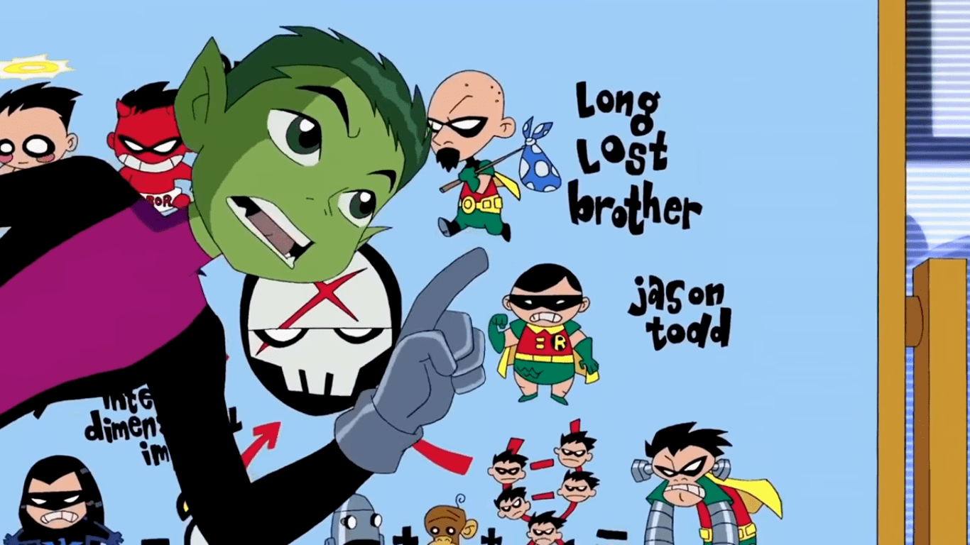 Here Beastboy says that Red X is probably a bionic monkey infused with Robins DNA. But on his board, we can clearly see Jason Todd as one of the possible identities. Also Nightwing. Fans have theorized for a long time that Jason Todd is Red X. Perhaps we will finally see some answers.