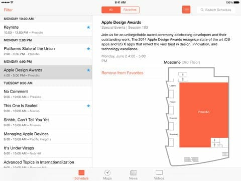 So go and grab this great app to remain in touch regarding all the developments. The WWDC app is FREE of cost. However, it just supports iOS 7.1 or later, a worse thing surely.
