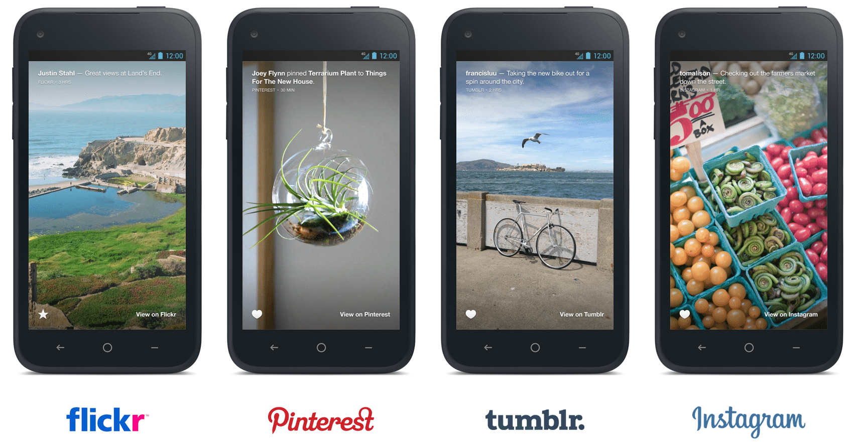 The updated Facebook Home now brings more social services to either your homescreen or lockscreen, making your social interaction broaden. Facebook Home now includes social services like Instagram, Tumblr, Pinterest and Flickr. Now you can see the updates not only from Facebook but also from these social services. Moreover, you can also like, thumbs up, favorite etc. the content.