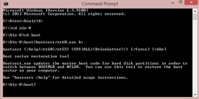 - bootsect/nt60.exe h:
