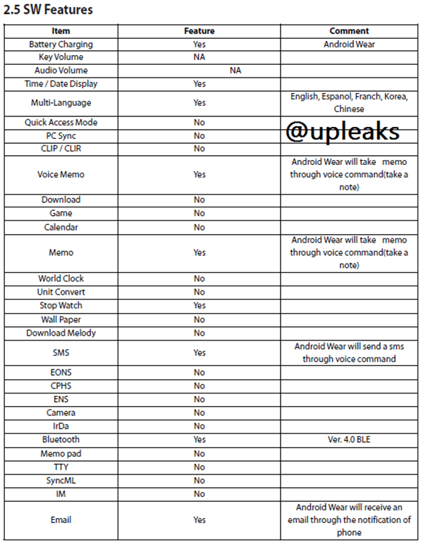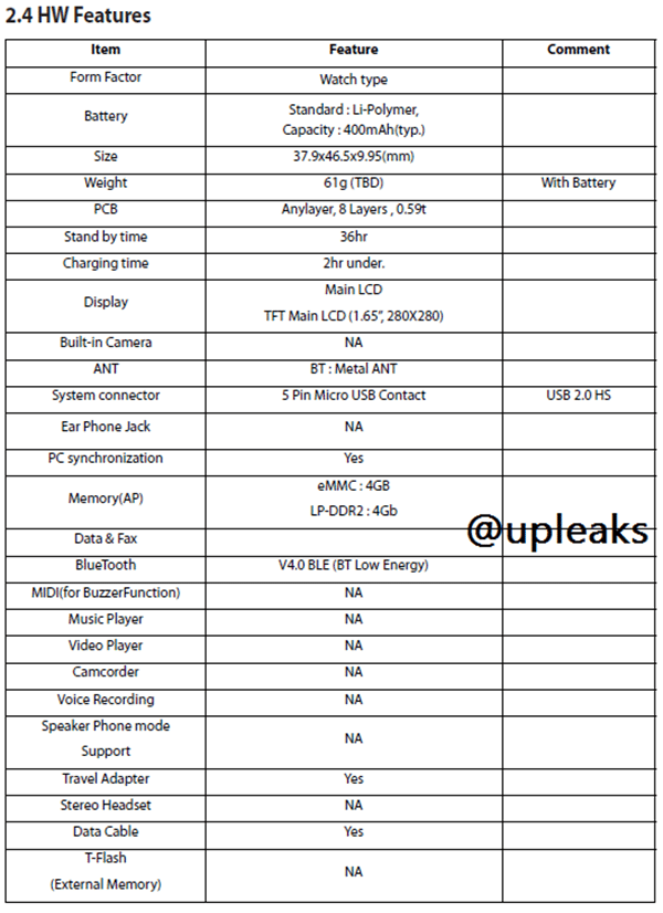 All this had created a lot of hype of what the watches look like would. Especially the LG G Watch is on the watchlist now a days (ironic). But still at this point there was much to cover as many of the key details were missing. Primarily the internal specifications of the smartwatches themselves. This problem has been solved by a very generous tweet by UpLeaks.