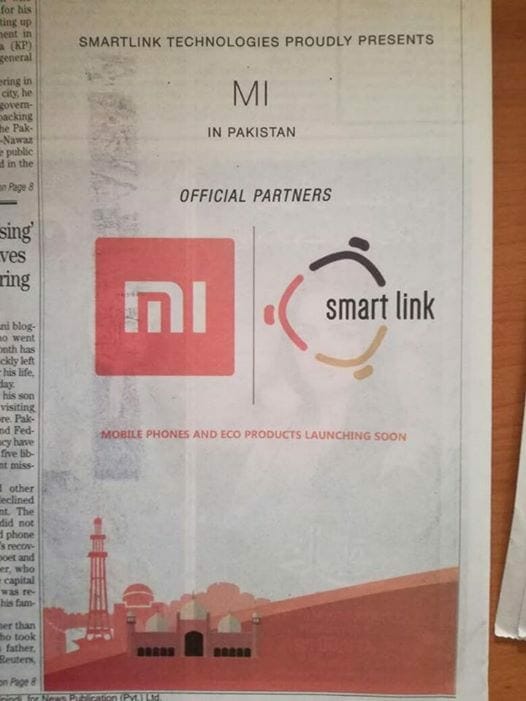 Smartlink Technologies has become the official partner of Xiaomi in Pakistan. This was confirmed by a newspaper advertisement today.