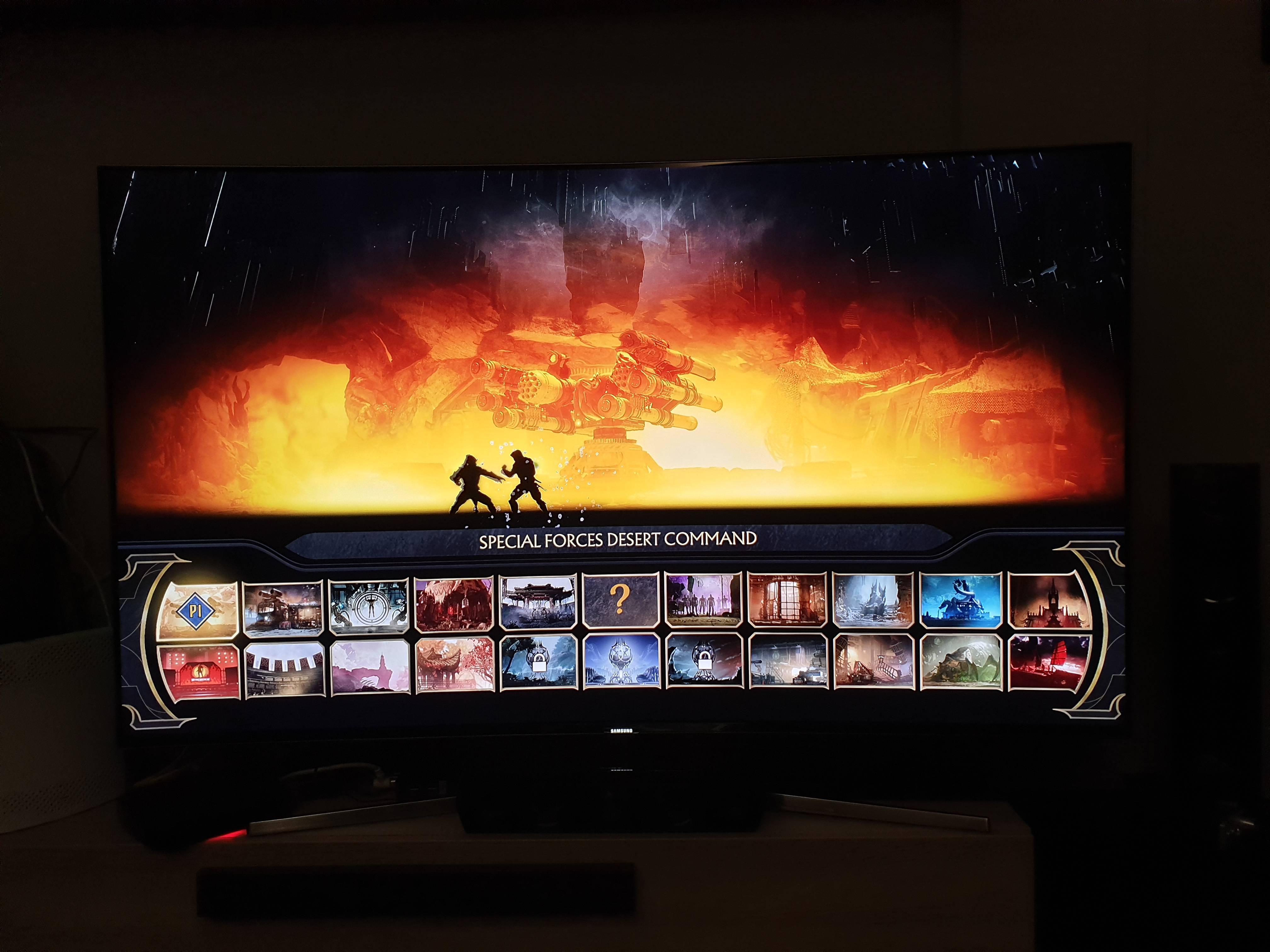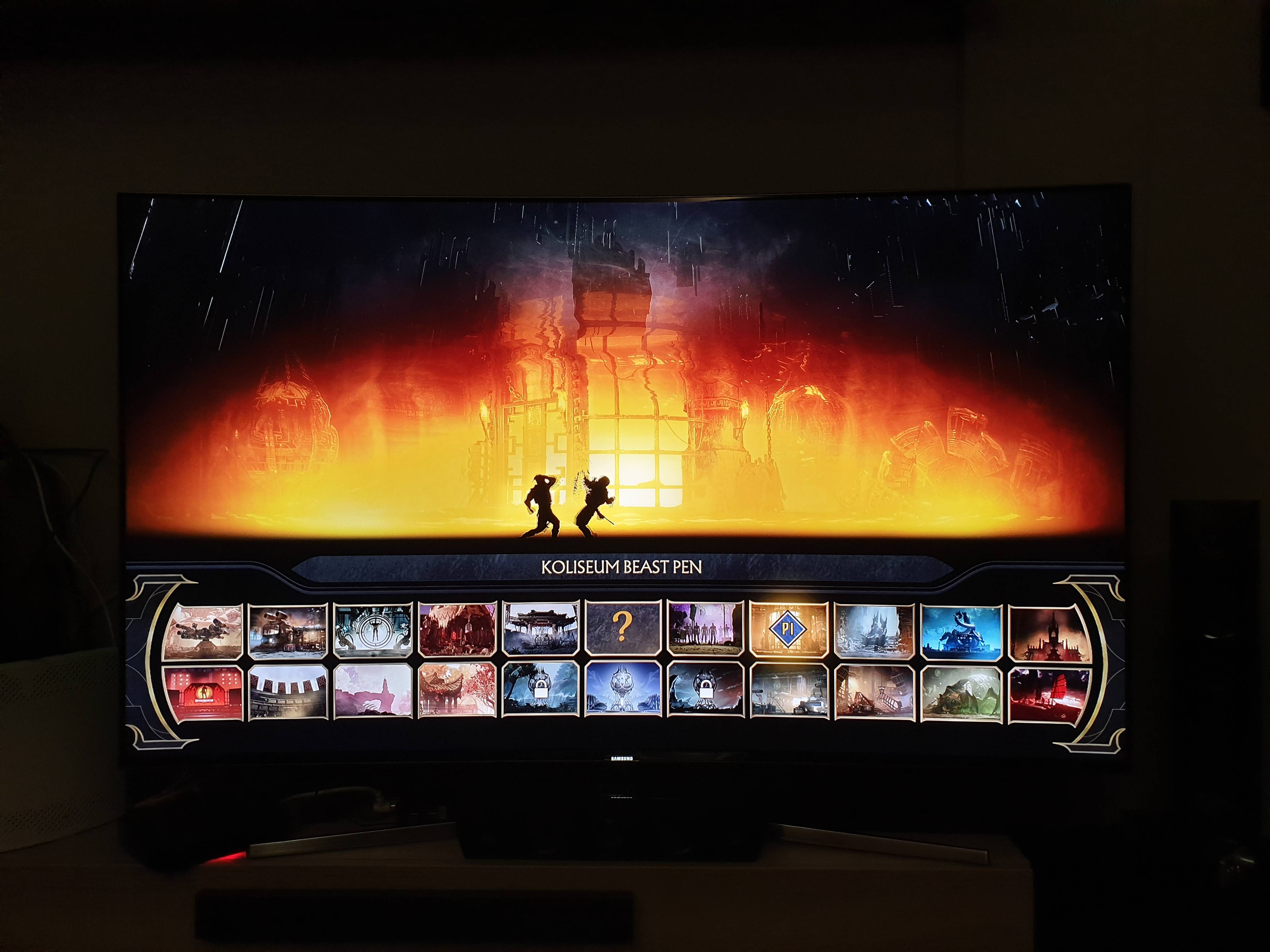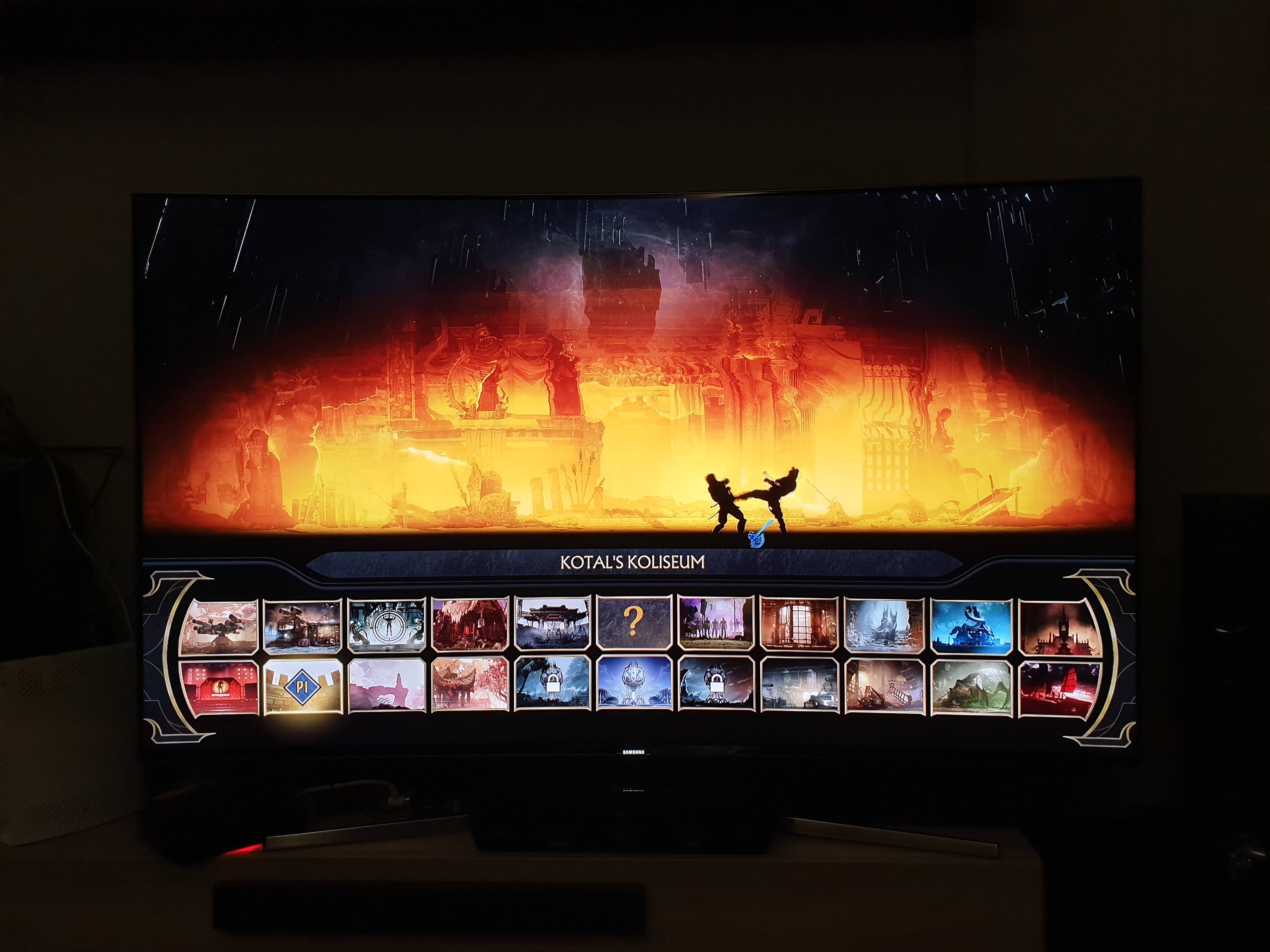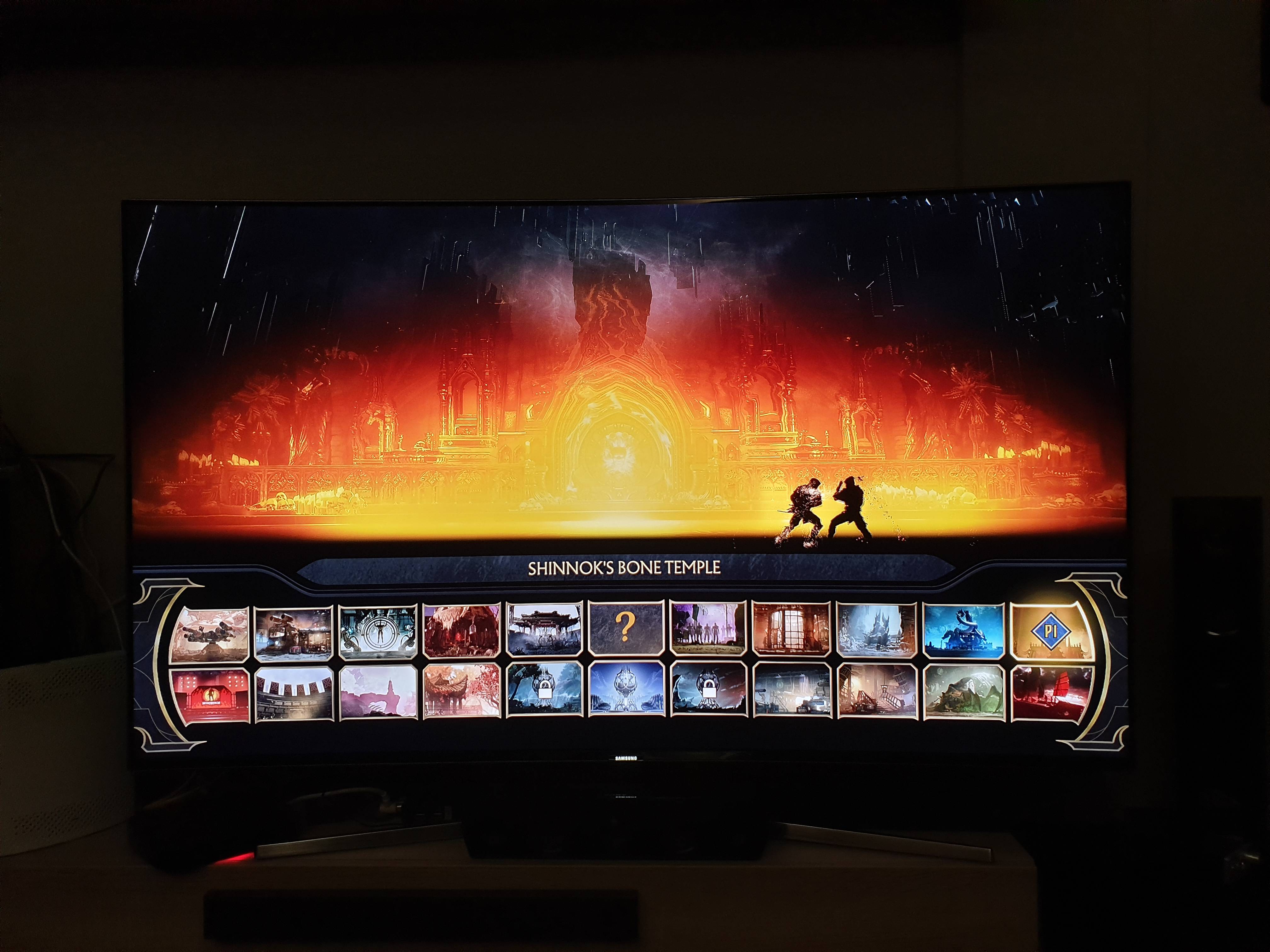 • The character select screen shows off the revealed characters, all the current characters will make this select screen comprise of 25 fighters. This does not include fighters to come in the Kombat Packs.