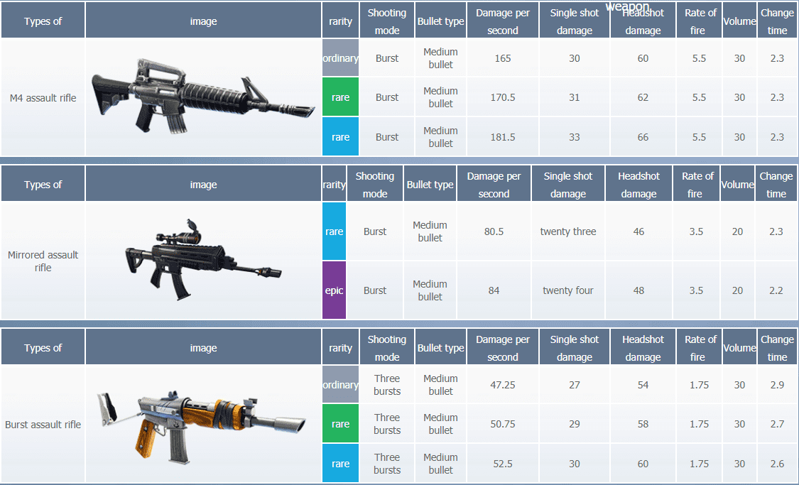 A list of all the guns along with their rarity, type and damage have just been revealed on the Fortnite Chinese Website. We will present all the translated information to you about them in this article. Fortnite Chinese has been the hot topic lately. Check out our article on how to get the rewards including skins and XP in the Chinese version of Fortnite here.